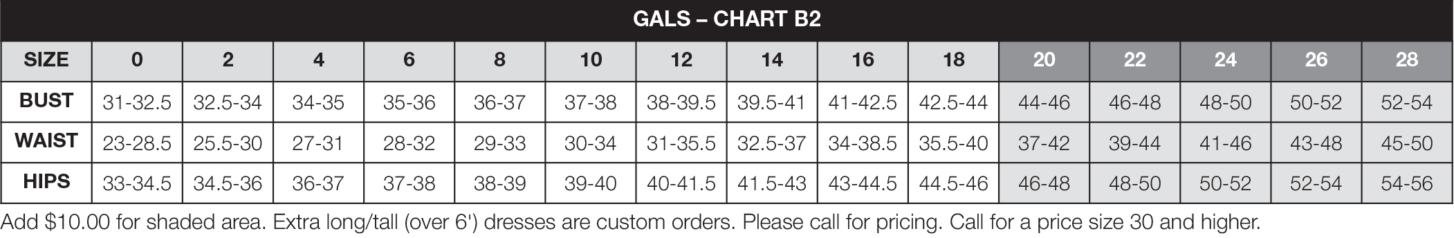 - Size Chart B-2