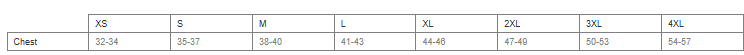 SIZE XS S M L XL 2XL 3XL CHEST 32-34 35-37 38-40 41-43 44-46 47-49 50-53
